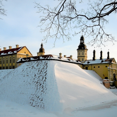 16:30 - Обзорная экскурсия по Несвижу. Несвиж - бывшая столица ординации князей Радзивиллов. На Рыночной площади этого живописного городка сохранилась ратуша, старинные торговые ряды, дома ремесленников; рядом — Слуцкая брама (городские ворота XVII в.). Знакомство с Фарным костелом, построенным в 1593 г. по проекту итальянского архитектора Джованни Мария Бернардони по распоряжению Николая Кристофа Радзивилла “Сиротки”. Осмотр Дворцово-паркового комплекса XVI—XVIII веков (архитектор Джованни Мария Бернардони), окруженного высокими земляными валами и обширными прудами. В его архитектуре переплетаются элементы ренессанса, барокко и классицизма. Величественный замок-дворец представляет собой систему соединенных в единый ансамбль зданий, образующих изящный парадный двор. Осмотр впечатляющих экспозиций в дворцовом комплексе — парадные залы дворца (Охотничий, Бальный, Портретный, Каминный, Золотой и др.), жилые и хозяйственные помещения. Прогулка по живописным паркам, примыкающим к замку. Экскурсия повествует об истории династии Радзивиллов — одного из самых влиятельных родов Великого Княжества Литовского и Речи Посполитой, оставивших глубокий след в культурном наследии белорусского народа и всей европейской цивилизации.