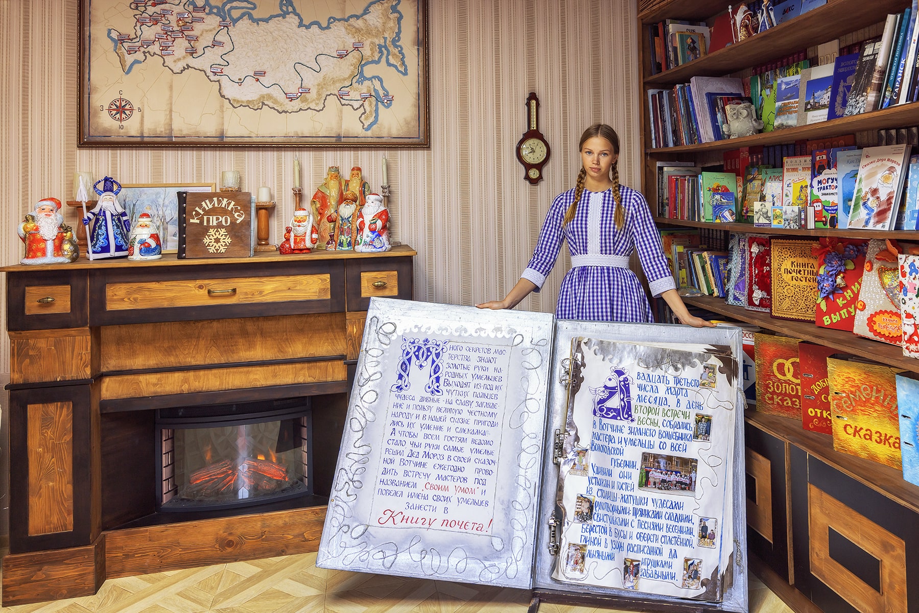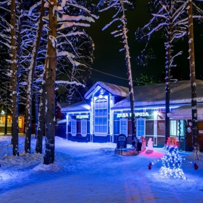 Вы сможете получить настоящее удовольствие от прогулки по бору и тропе сказок. В своей сказочной резиденции ждет встречи с вами сам белобородый кудесник – Дед Мороз и его помощники. В доме Деда Мороза гости смогут набраться мудрости, загадать заветное желание, посмотреть удивительную коллекцию подарков, посетить волшебную обсерваторию и библиотеку, увидеть деревянную кровать зимнего кудесника и заглянуть в волшебное зеркало.