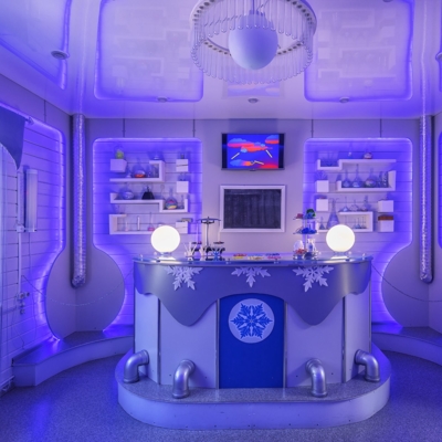 Путешествие по Терему Деда Мороза и встреча с Зимним Волшебником. Именно здесь происходит главное таинство Новогоднего праздника – общение с Дедом Морозом. В Тереме Деда Мороза, помимо Тронного зала, есть еще немало волшебных комнат, посетив которые, вы узнаете, как живется в них Деду Морозу: где он спит (спальня с резной кроватью и пуховыми перинами), в какие одежды одевается (гардеробная с удивительными сказочными нарядами), где работает (рабочий кабинет с библиотекой и обсерваторией), где хранится коллекция подарков, которые привозят Деду Морозу со всего света.